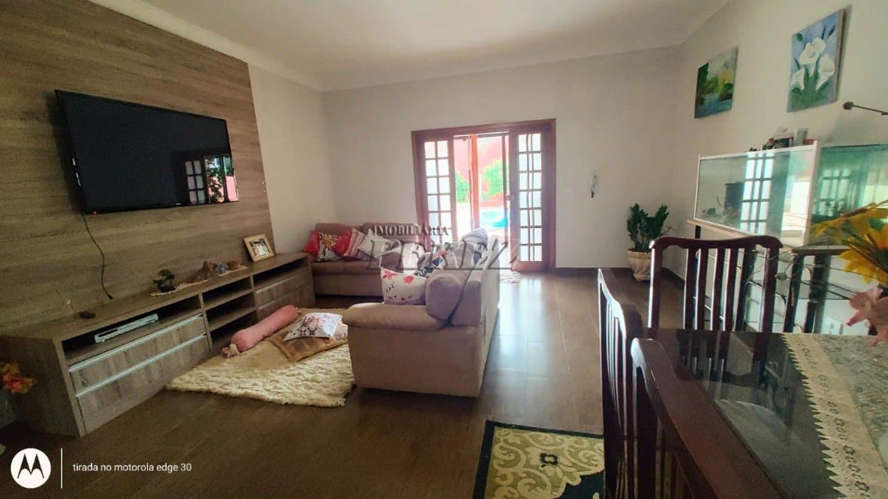 Casa com 4 dormitórios sendo 3 suítes com armários, closet, wc social, sala, copa, cozinha com armários, área de serviço, wc de serviço, churrasqueira, piscina adulto e infantil, salão de festas, câme...