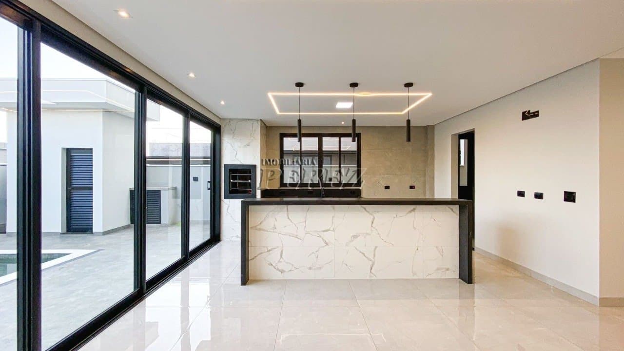 Linda Casa no Condomínio Araçari - Parque Tauá, Londrina Tipo de Imóvel: Sobrado Dormitórios: 03 suítes amplas e confortáveis Ambientes: Sala para 02 ambientes integrada com a cozinha e churra...