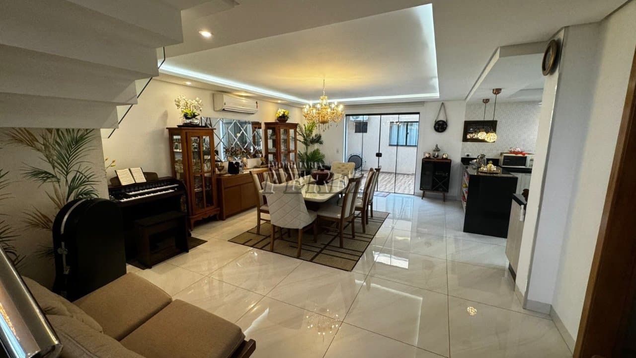 Linda Casa no Condomínio Araçari - Parque Tauá, Londrina Tipo de Imóvel: Sobrado Dormitórios: 03 suítes amplas e confortáveis Ambientes: Sala para 02 ambientes integrada com a cozinha e churra...