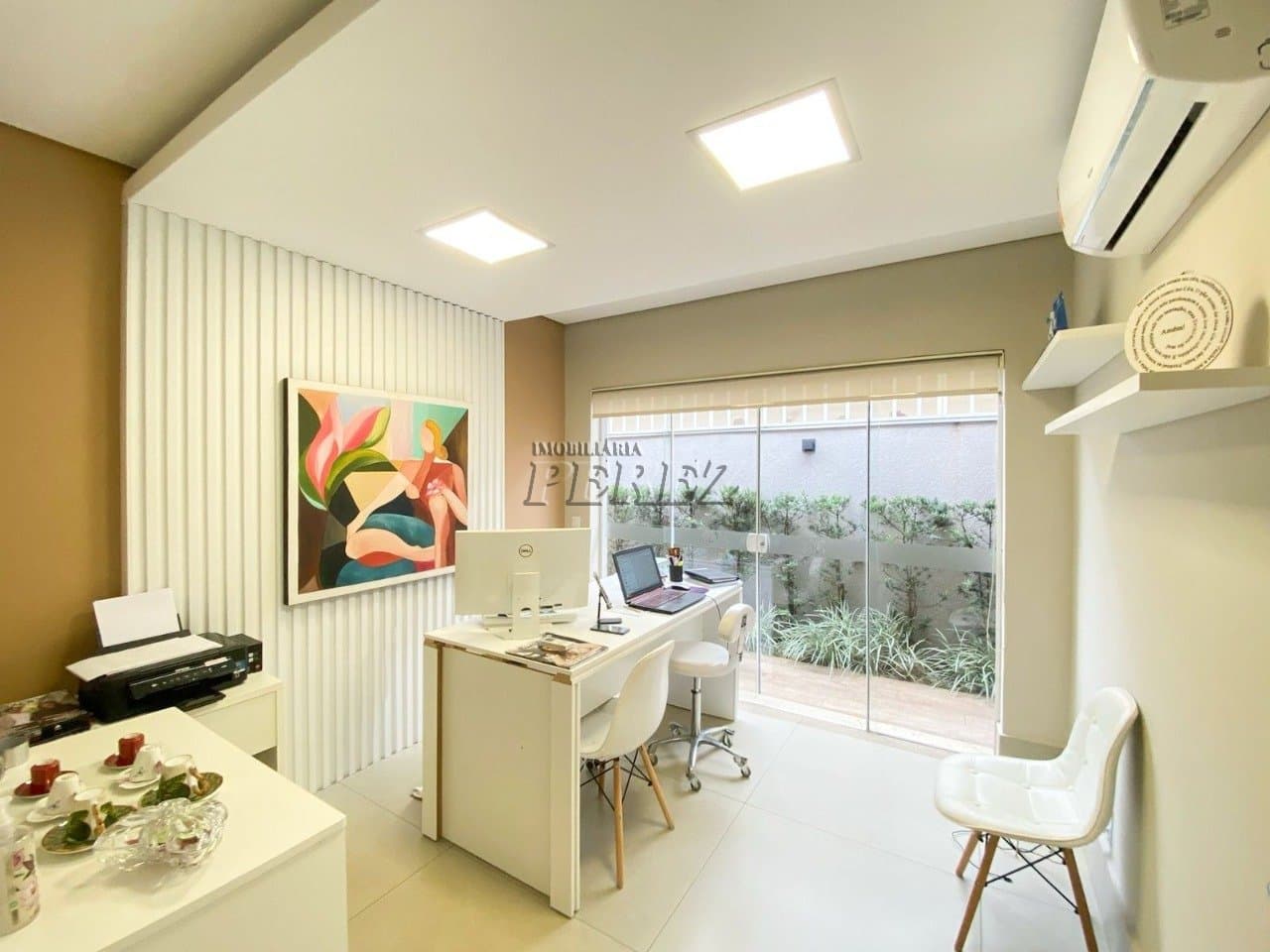 Climatização de alta qualidade com ar condicionado, oferecendo um ambiente agradável em qualquer estação. Mobiliário planejado: mesa e bancada de trabalho de design moderno, proporcionando praticidad...